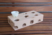 La MiaouBoite est une fabrication artisanale réalisée dans différentes essences de bois selon les modèles avec un très joli design qui imite un bloc de gruyère et fait apparaître quelques traces de passage de souris...