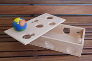 L'atelier de "La Litière du Chat" a donc fabriqué la MiaouBoite, une boîte percée de trous dans laquelle vous allez déverser les croquettes. Mélant jeu et chasse, votre chat devra attraper la nourriture avec ses pattes à travers les trous.